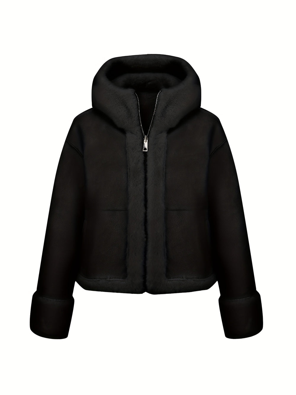 Made from premium-grade faux fur and soft-touch fabric for a luxurious feel inside and out. The hooded design and relaxed silhouette make it ideal for layering, while the double-sided zip ensures both function and style.