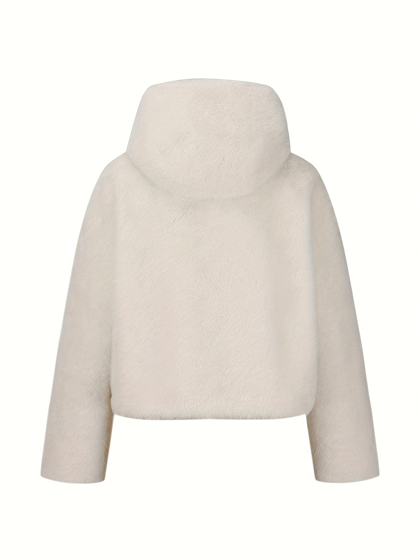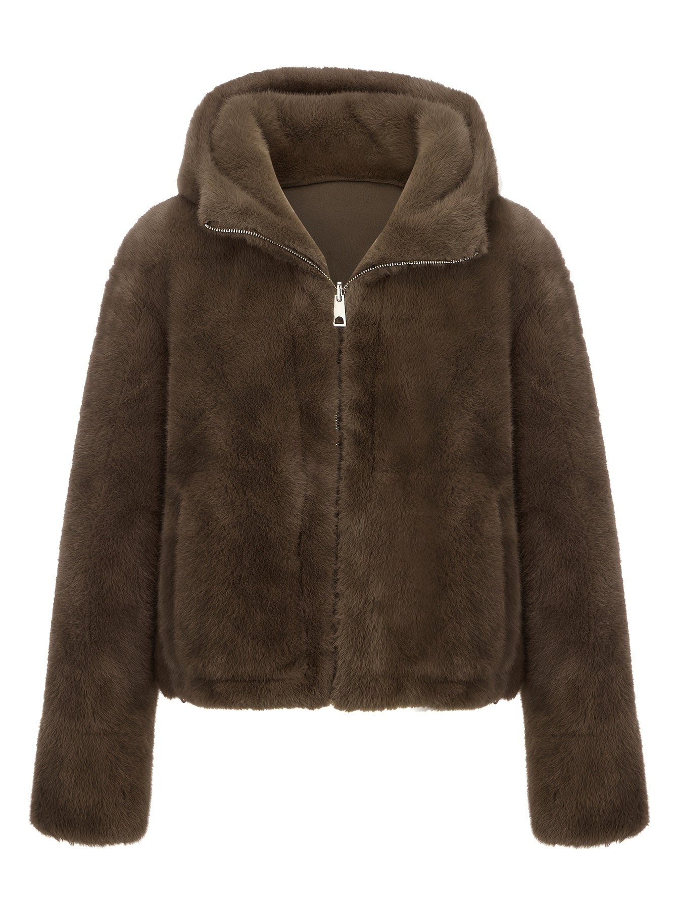 Made from premium-grade faux fur and soft-touch fabric for a luxurious feel inside and out. The hooded design and relaxed silhouette make it ideal for layering, while the double-sided zip ensures both function and style.